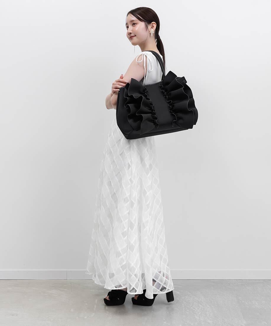 立体的なダブルフリルデザインが印象的なトートバッグ。
